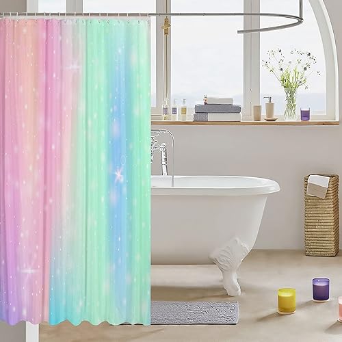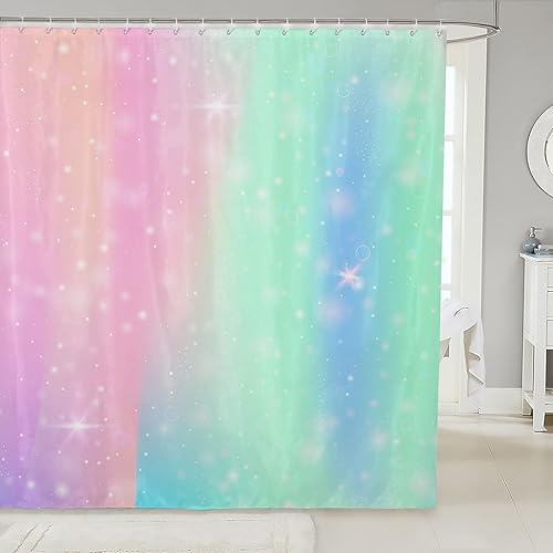 FJAUOQ Tie Dye Shower Curtain Girl Batik Bath Curtain Rainbow Iridescent Gypsy Bathroom Sets Accessories Trippy Bathtub Shower Curtain, Pink Purple Blue Print Decor with Hooks 72' W x 84' L
