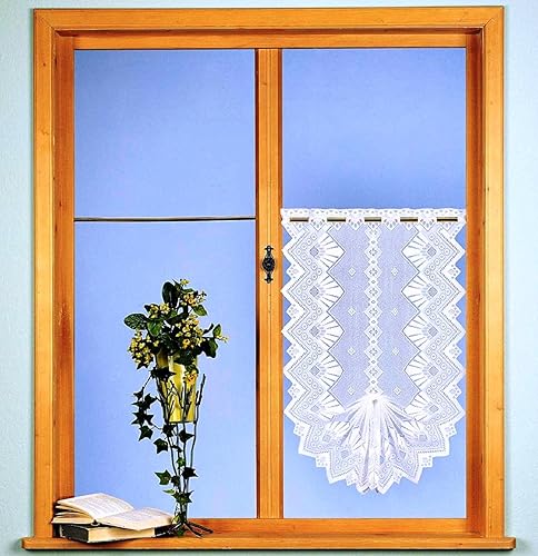 Fashion&Joy - Rideau brise-bise pour fenêtre à battants - Hauteur 50-75 cm - Largeur 45-52 cm - Jacquard élégant maison de campagne en blanc - Certifié Ökotex Typ86