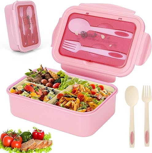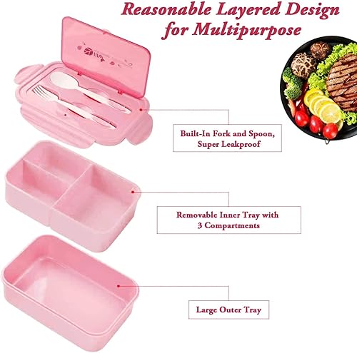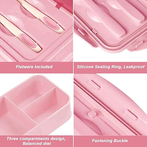 Sinwind Lunch Box, Bento Box, Boite Bento, Boîte Bento1400 ML avec 3 Compartiments et Couverts (Rose)