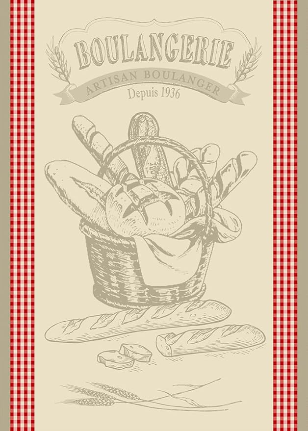 Autrefois Torchon Jacquard Lin 48x70cm, Thème Boulangerie, Pain