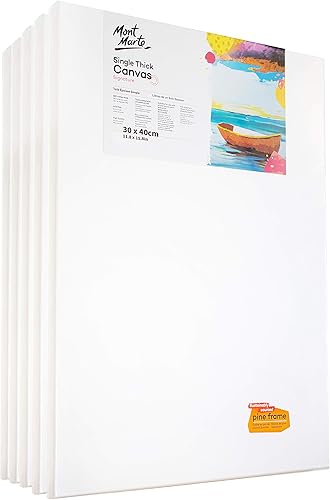 Mont Marte Toile Peinture 30x40 cm – Lot de 5 – Toile a Peindre étirée – Coton, Blanc, Apprêt – 280gsm – Pour peindre avec Peintures Acryliques, Peintures à l'Huile, Gouache