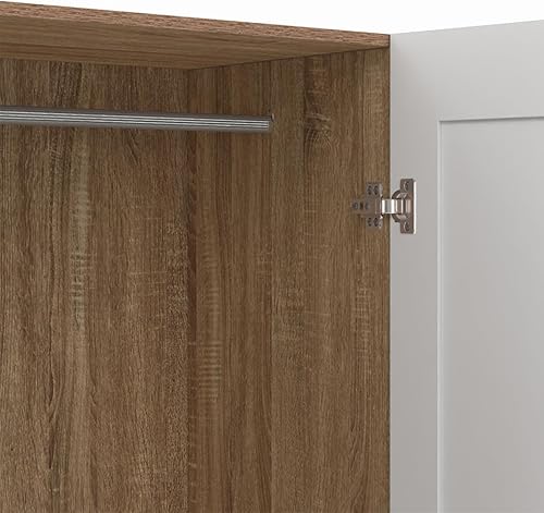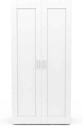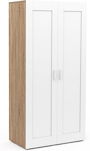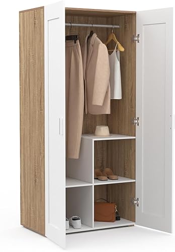 IDMarket - Armoire 2 portes VITO blanc et bois penderie 80 cm avec étagères rangement maxi capacité