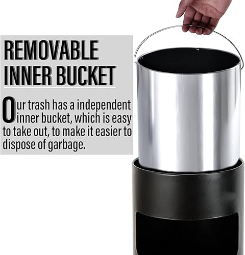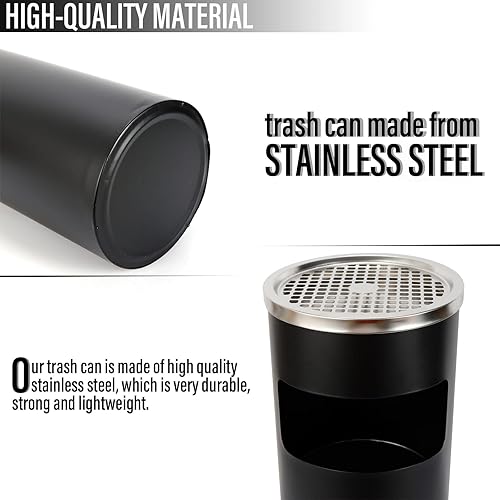 Cendrier sur pied pour l'extérieur, avec poubelle, seau intérieur, 30 l, 25 x 61 cm, noir