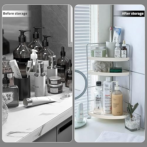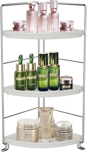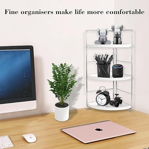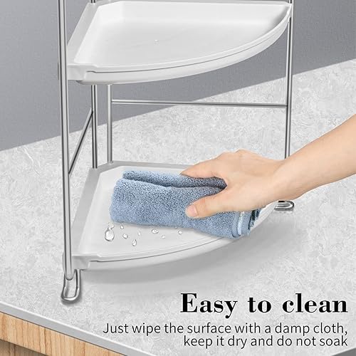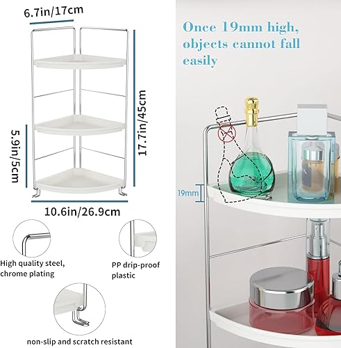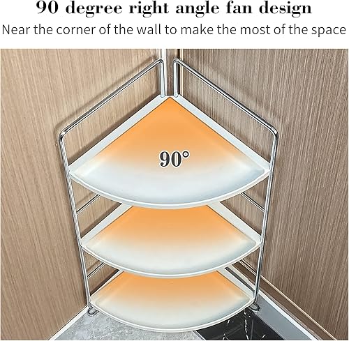 Gdraco Rangement Organiseur de Salle de Bain à 3 Niveaux, étagère d'angle en Forme d'éventail, Facile à Assembler, Organiseur Mobile Multifonction pour Cuisine Chambre Salon, Argent
