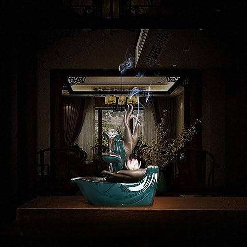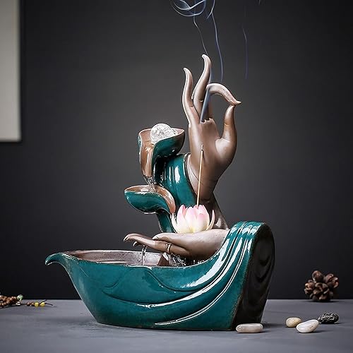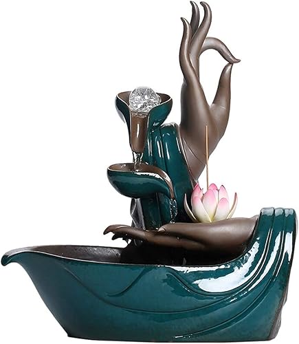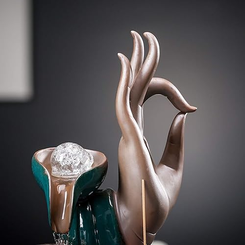 MENGLI-2024 Fontaine de Table Fontaine de Bureau en céramique Main de Bouddha, Fontaine Zen, Cascade, Porte-encens, décoration adaptée à la décoration de la Maison et du Bureau Fontaine d'intérieur