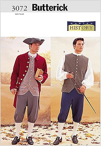 Butterick Patterns B3072 Costume Historique pour Homme Taille 44-46 - 48 : Pantalon Longueur Genou, Ballon - Chemise Mannequin, Gilet, Veste ajustée et Chapeau tri-Angle, Blanc, Motif
