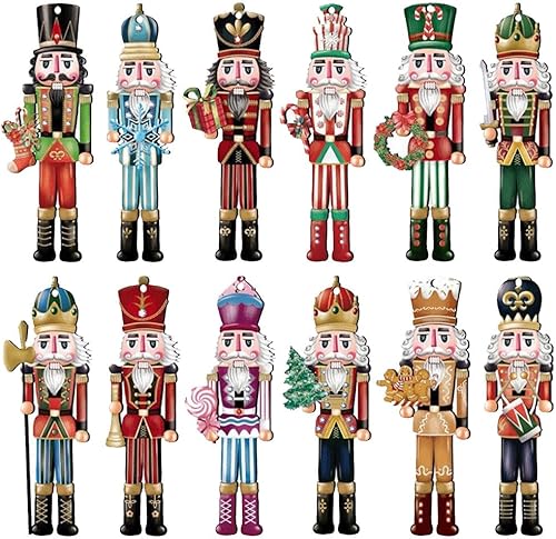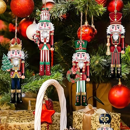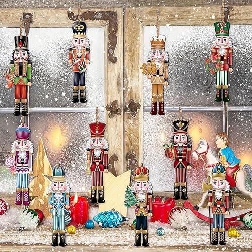 BCEDIGAD 24 Pcs Noel Casse-Noisette Soldat Décorations Casse Noisette Suspendu d'arbre de Noël Pendentif Soldats Casse-Noix en Bois Pendentif en Bois pour Fenêtre Cheminée Jardin Fête de Noël