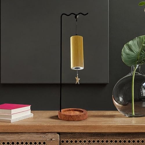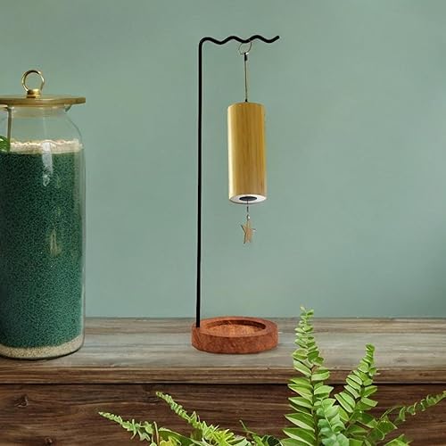 MagiDeal Support de Carillon éolien, Porte-pinceau de Calligraphie avec Base En Bois, Support En Métal pour Suspendre Des Pots de Fleurs, Des Pendentifs, Des é, noir
