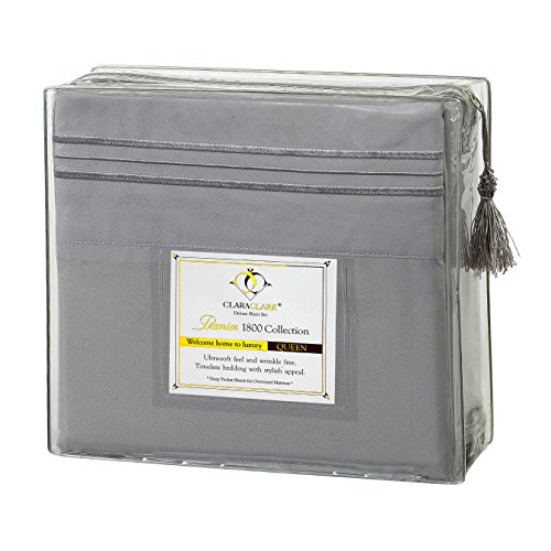 Clara Clark Ensemble Parure de lit de Luxe de la Collection Premier 1800 en Microfibre à 3 Lignes, Jaune, Queen Size