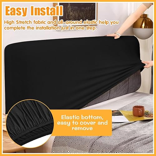 NAROSEBE Housse de Tête de Lit Extensible, pour Tête de Lit de 170 à 190 cm, Protège Tête de Lit Lavable, Protection Tête de Lit Anti-Poussière, Housse de Coussin Tete de Lit Noire, pour Hôtel Maison