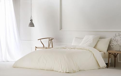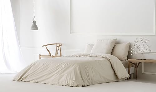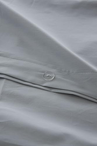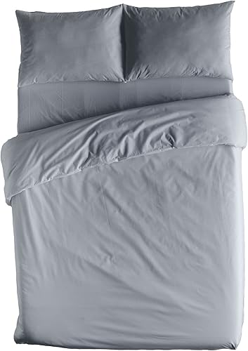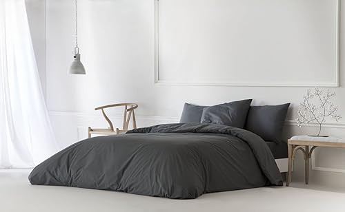 ETHERE MAISON Housse de couette unie grise pour lit de 180 cm - 260 x 240 cm, coton 200 fils, fermeture à boutons.