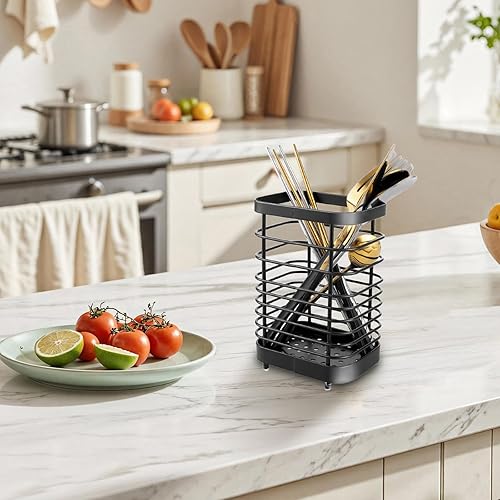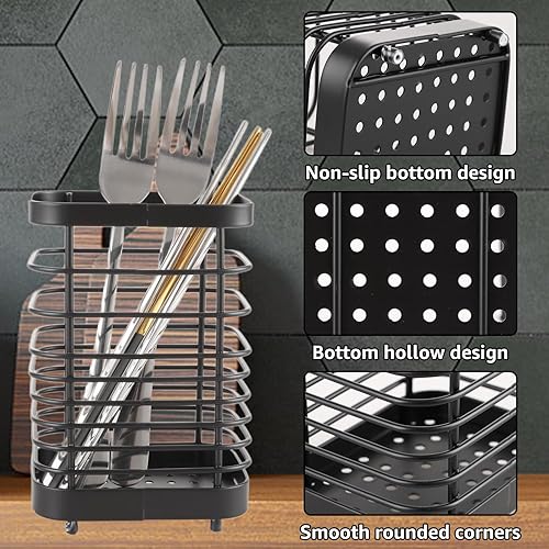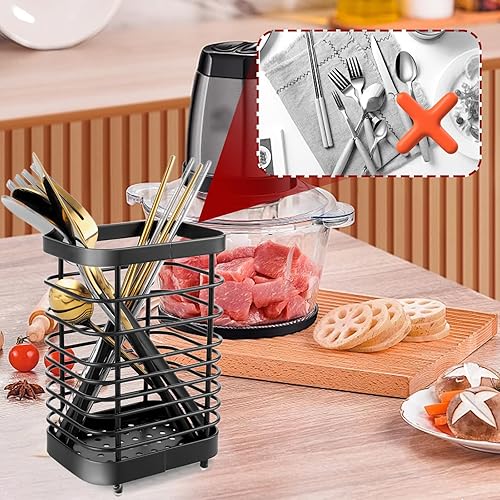 CYEER Lot de 2 Panier à Couverts en Acier Inoxydable, Porte Ustensile Cuisine, Panier à couverts 15 cm, égouttoir à Vaisselle, Organisateur D'évier de Cuisine, Accessoires