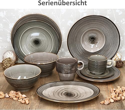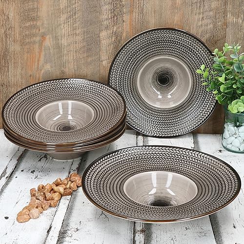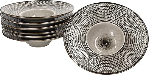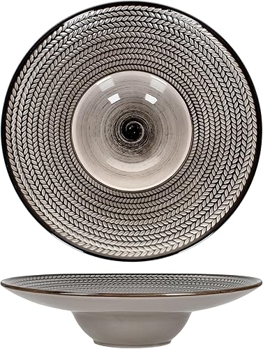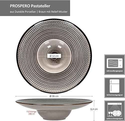Mäser Prospero Lot de 6 assiettes à pâtes I Ø 26 cm, 180 ml I Assiettes en porcelaine marron avec relief pour 6 personnes I Assiettes creuses pour soupe, salade, etc. I Assiette à pâtes avec large