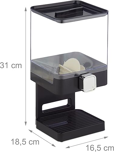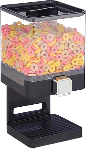 relaxdays 10026492_46, noir Distributeur de Céréales, cornflake, support plastique, fruit sec, flocon avoine, HxlxP 31x16,5x18,5 cm