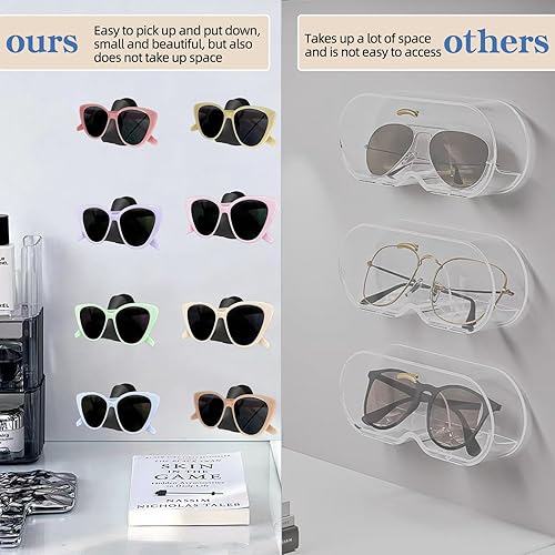 Support Mural Presentoir Lunettes,6 Pièces Porte-Lunettes Mural Autocollant,Support Mural Élégant pour Lunettes de Soleil ,Porte Lunettes Maison pour Accrocher et Exposer Des Lunettes(Transparent)