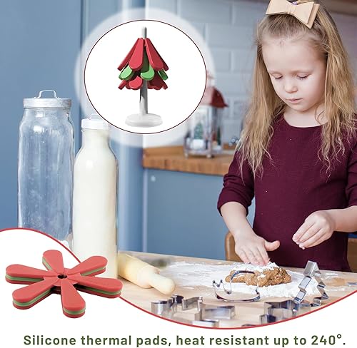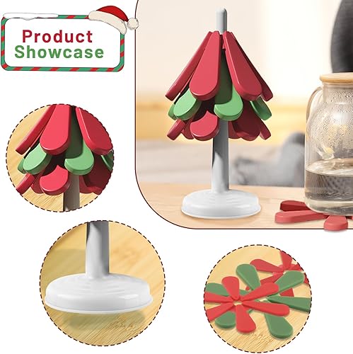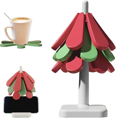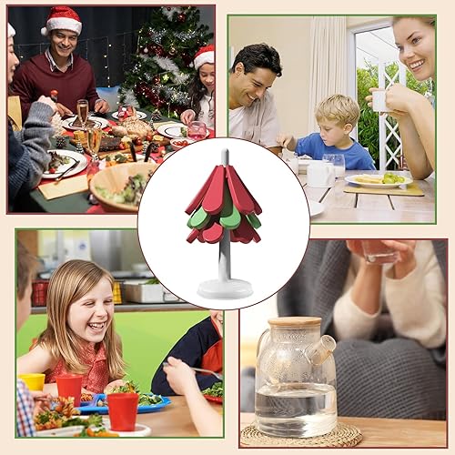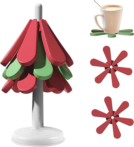 Dessous Verre, dellyy Dessous de Verre Silicone, Dessous de Plat, sous-Verres d'Arbres, sous-Verres Isolés, Set Table Noël Lavable, sous-Verres à Café, Tree Coasters, sous-Verres Isolés (Couleur-SQ)