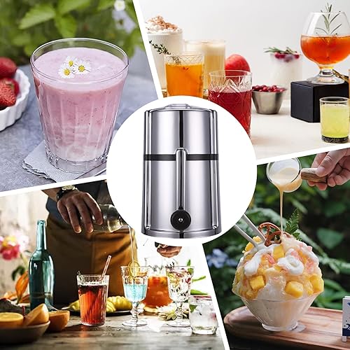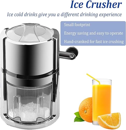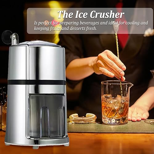 Broyeur à glace manuel en acier inoxydable - Broyeur à glace portable avec pelle à glace - Broyeur à glace pour smoothies, cocktails - Conserve la fraîcheur - Capacité : 1,1 l