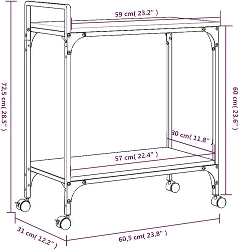 vidaXL Chariot de Cuisine, Étagère avec Roues, Chariot de Service, Meuble de Rangement Salon Salle de Bain Intérieur, Chêne Sonoma Bois d'Ingénierie