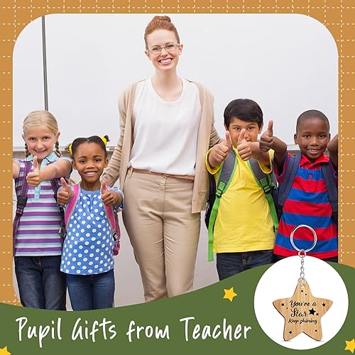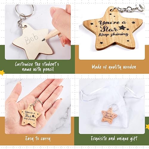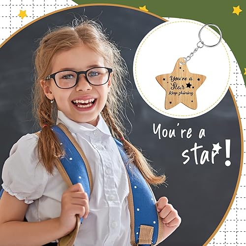 Namalu 30 Pieces School Leaver Star Keyring Gifts Class End of Term Star Token Favor Teacher to Pupil Leaving Gift You're a Star Keep Shining End of Term Gifts for Children Wooden Token