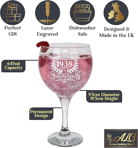 Grand verre à gin gravé vintage 1969 pour 56 ans 645 ml