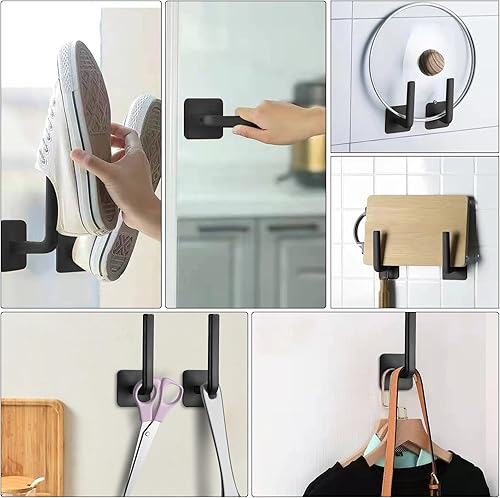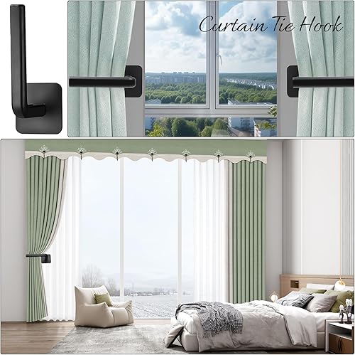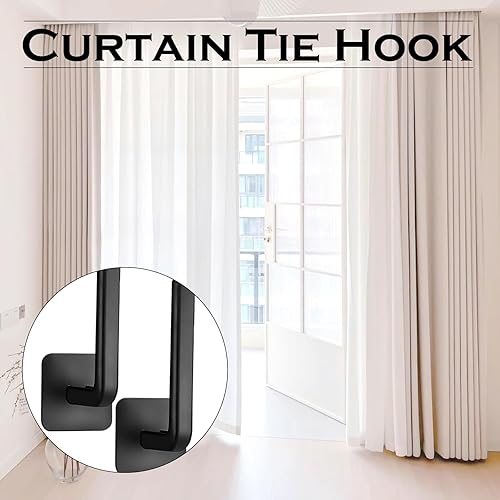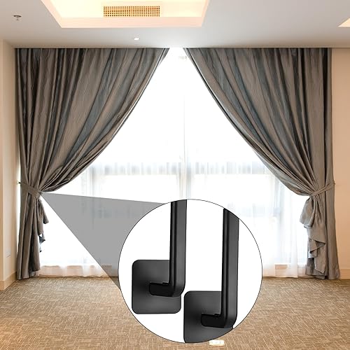 EnixwH 2 Pièces Embrasse pour Rideaux Attache Rideau sans Percage Embrasses Décoratives Curtain Holdbacks Holders Crochet Noir en Forme De L, Attache Rideaux pour Voilage Salon Chambre Bureau