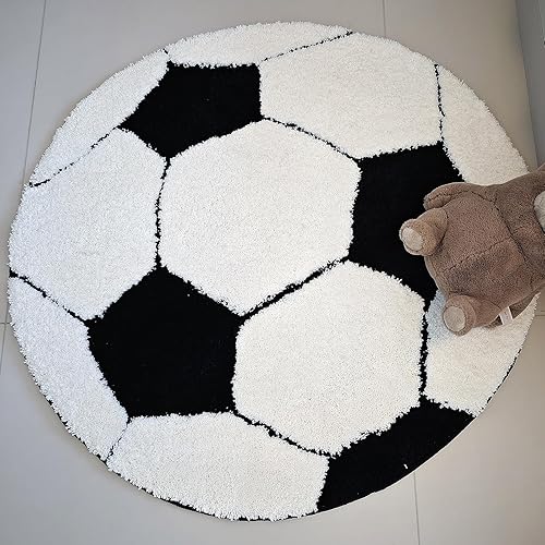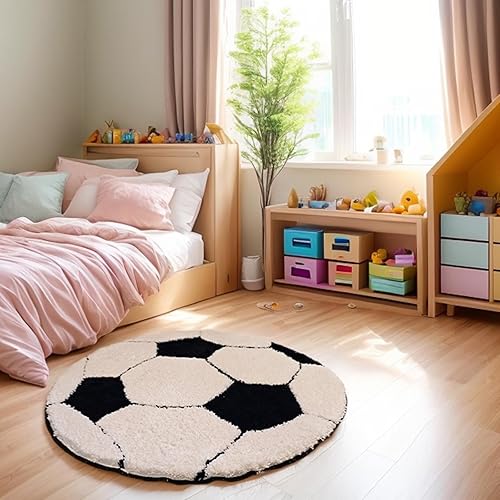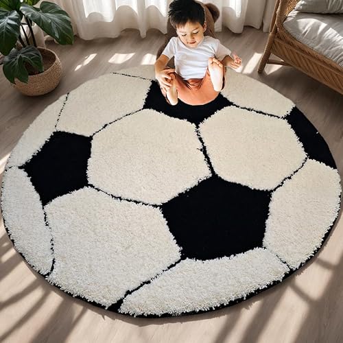 Wokii Tapis Enfant,Tapis Rond à Poils Profonds,Lavable Tapis Décoratif De Football,pour Salon,Chambre à Coucher,Bain,Salle à Manger ou Chambre d'enfant Tapis de Chaise