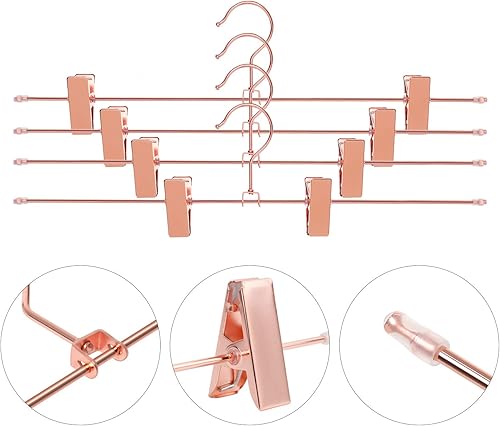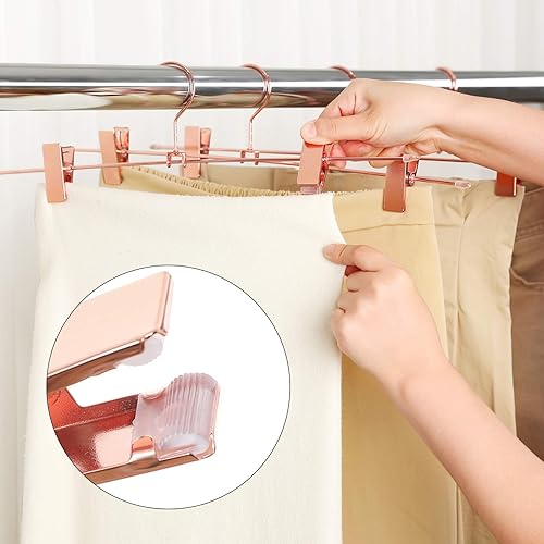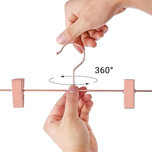 SONGMICS Cintres Pinces Pantalons en Métal, Cintres Porte Jupes Pantalons, Lot de 10, Extra-Larges 40 cm, Gain de Place, Antidérapants, Crochets Chromés Pivotants à 360 °, Rose Gold CRI47R10