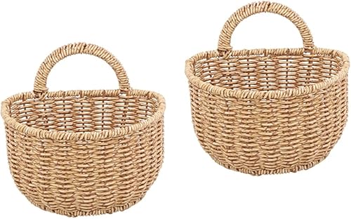 Cabilock Panier De Rangement Tissé Paniers à Ustensiles Muraux Panier Tressé à La Main Panier De Salle De Bain Paniers Suspendus Pour L'organisation Panier Décoratif Pp Extérieur