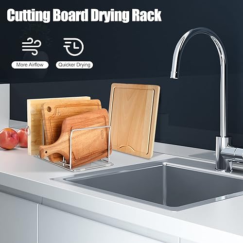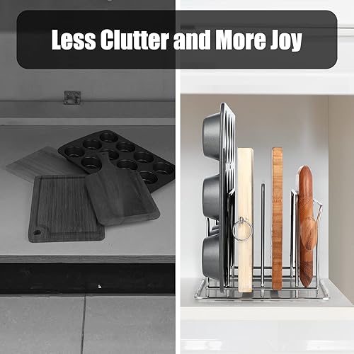 Joy Aid Support de rangement pour ustensiles de cuisine pour plaques de cookies/pâtisserie, planches à découper, poêles, grilles de refroidissement, 4 emplacements de 2 largeurs, acier inoxydable 304