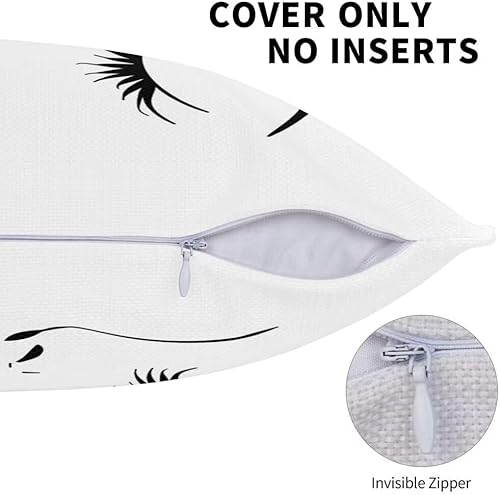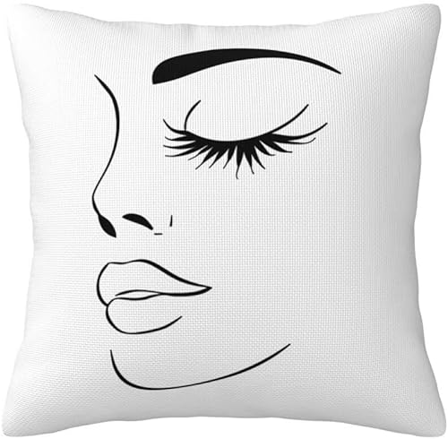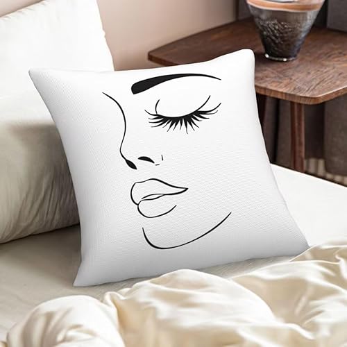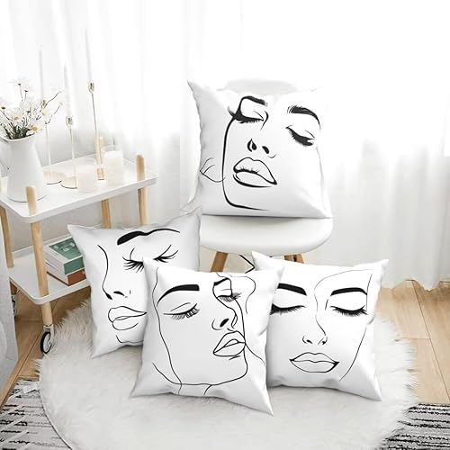 Housse Coussin 40x40 cm Lot de 4 Noir et Blanc Coussin Canape en Lin Housses de Coussins Visage Abstrait Taies D'Oreillers Carré Coussins Décoratifs pour Jardin Blench Salon Canapé Ferme Décor -LI102