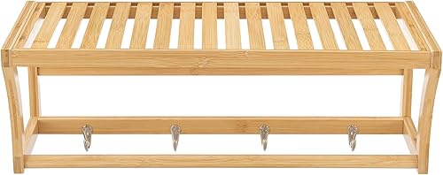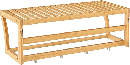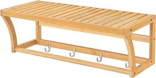 [en.casa] Étagère Murale avec 4 Crochets et Barre de Serviette pour Salle de Bain Cuisine Entrée Petit Meuble de Rangement au Style Scandinave Bambou 20,5 x 59,5 x 25,5 cm Naturel
