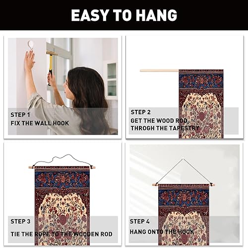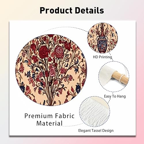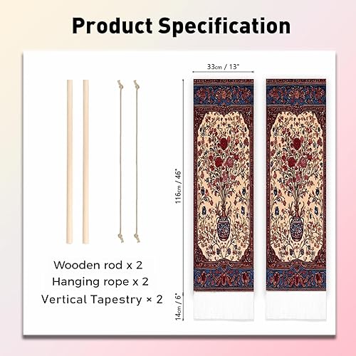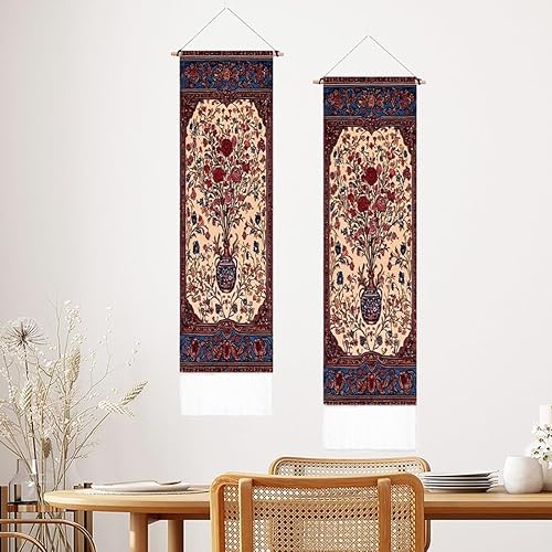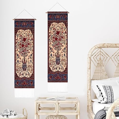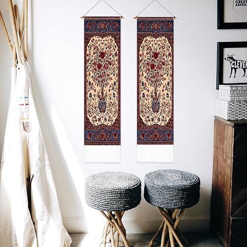 PLIGREAT 2 Pack Tapisserie murale vintage, Boho Flower Tapisserie avec glands Mandala esthétique Tenture murale Folk Floral Art décoratif Tapisserie pour chambre à coucher Salon Long Art mural étroit