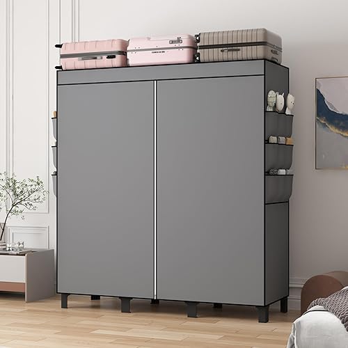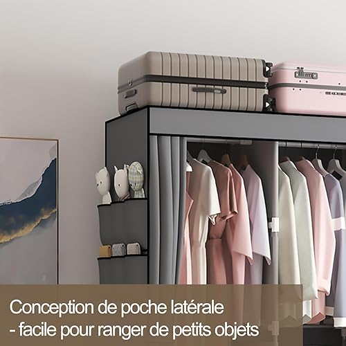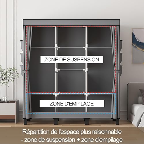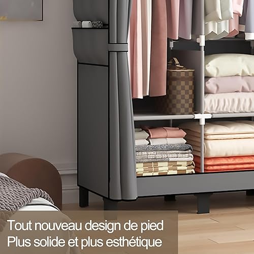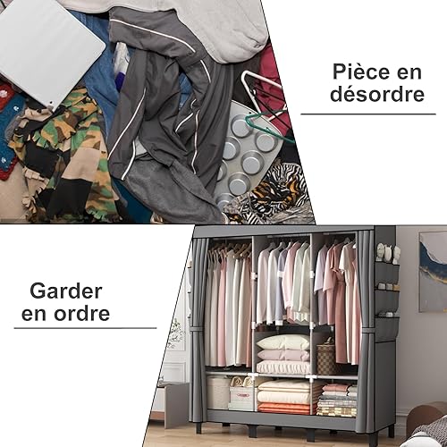 LOEFME Penderie 172 x 130 x 45 cm pour Chambre à Coucher - Armoire en Tissu au Design Basique avec 2 Barres de Suspension et 18 Poches latérales - Armoire en Tissu - Gris