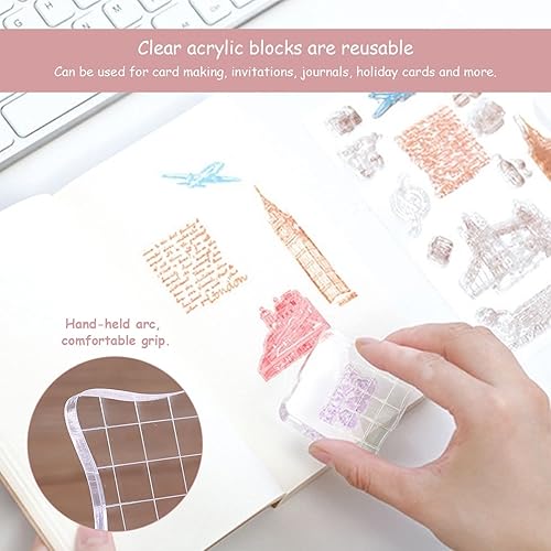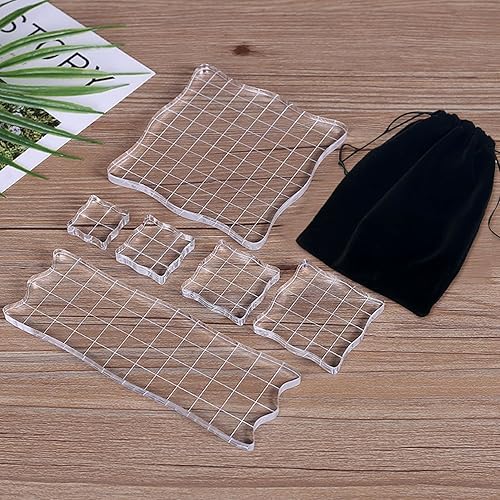 CQQNIU 6 pièces Blocs de tampons Transparents avec Bords incurvés Acrylique avec Lignes de Grille Outil de Tampon Porte-Tampon décoratif pour Album Scrapbooking décorations de Cartes Artisanales