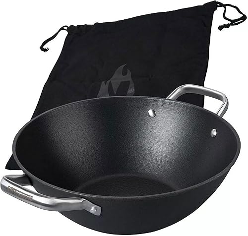 FMprofessional Force Wok en fonte 32 cm - Poêle wok avec revêtement antiadhésif de qualité supérieure - Convient à tous les types de feux (y compris induction) - Environ 33 x 42,8 x 12 cm