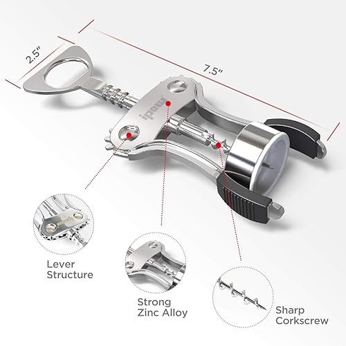 Ipow Tire-bouchon en acier inoxydable Rouge