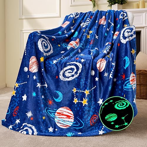 Joiedomi Couverture phosphorescente – Cadeaux de construction pour filles et garçons âgés de 2, 3, 4, 5, 6, 7, 8, 9, 10, 11, 12 ans – Couverture en flanelle douce et confortable pour décoration de