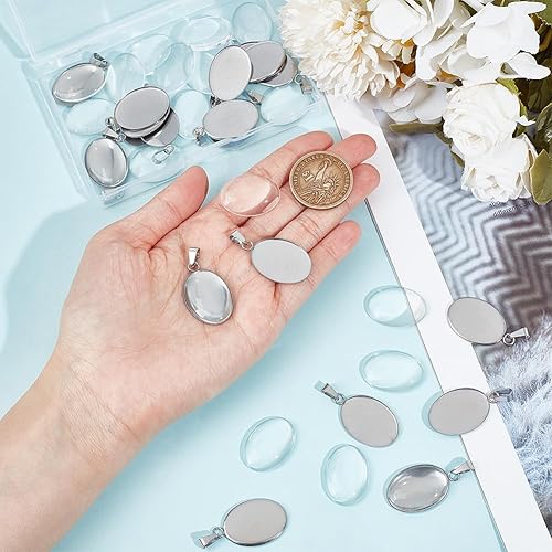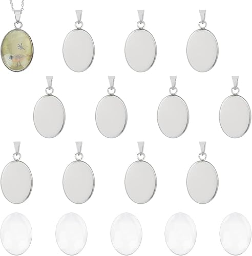 UNICRAFTALE Pendentifs Cabochons Cœur Acier Inoxydable Kit de Fabrication de Plateaux à Lunette Vierges Breloques de Base avec Cabochons Paramètres de Cabochon pour Bijoux