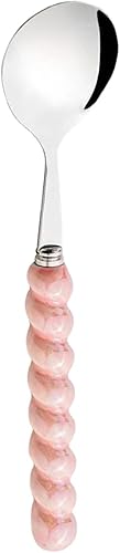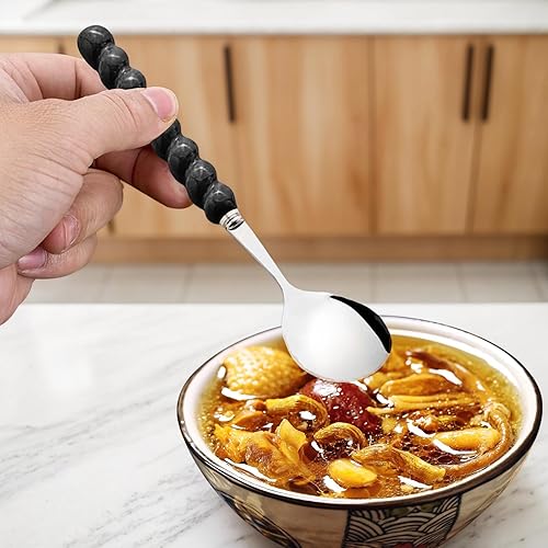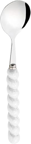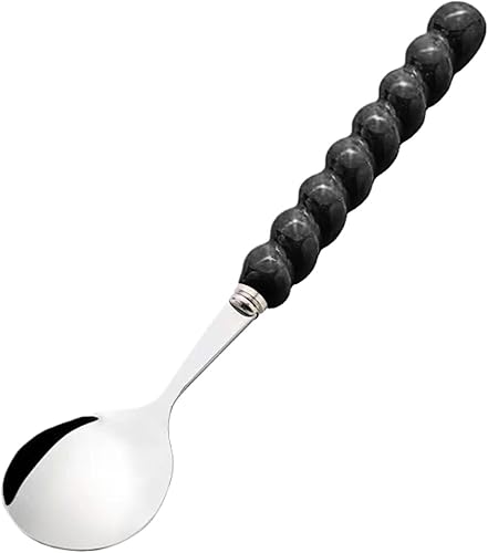 Metal Soup Spoon, Restaurant Serving Utensil, Stainless Steel Build, Elegant Pearled Handle, Durable Tableware, Silver Finish, Ideal for Home, Café, Hotel Use, 6.97x1.57in