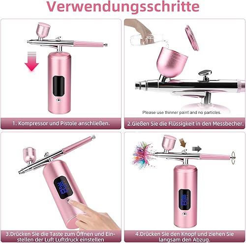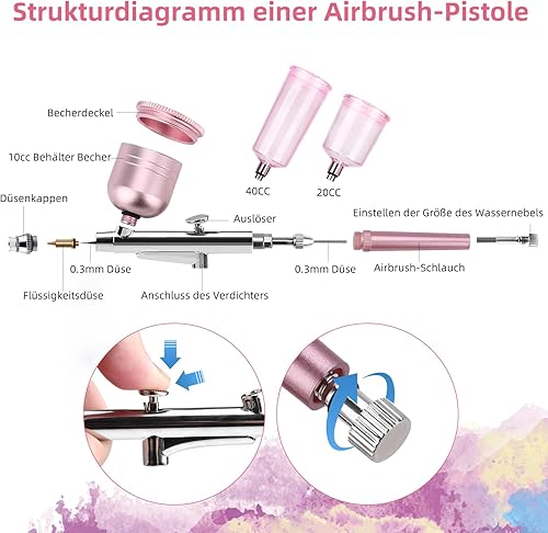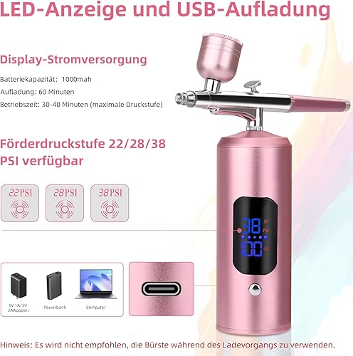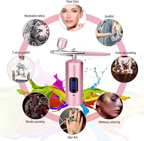 Daakro Kit aérographe sans fil avec compresseur 38 PSI - Mini aérographe cosmétique rechargeable - Décoration de gâteau, nail art, tatouages et peinture du visage