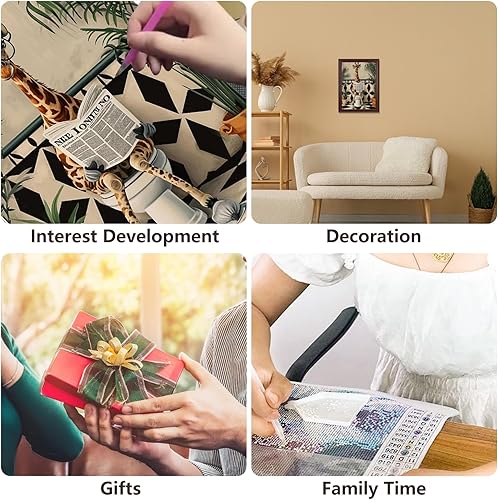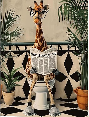 VARHHUXHA Kit de peinture diamant 5D pour adultes, girafe mignonne sur les toilettes - Kit d'art complet pour adultes - Kit de broderie au point de croix pour débutants - Décoration murale d'intérieur