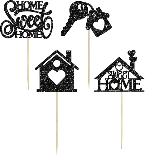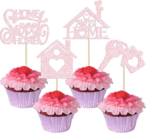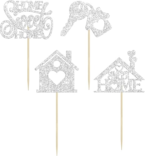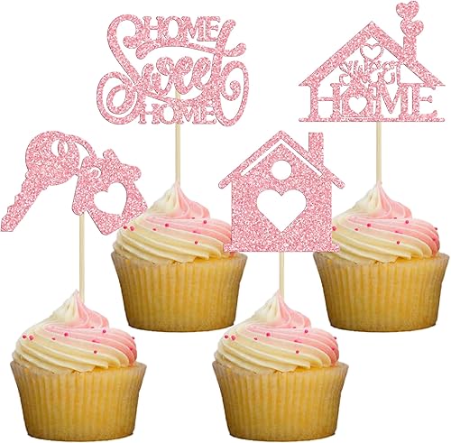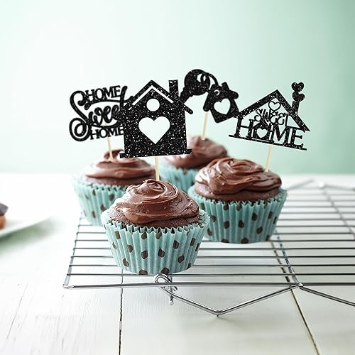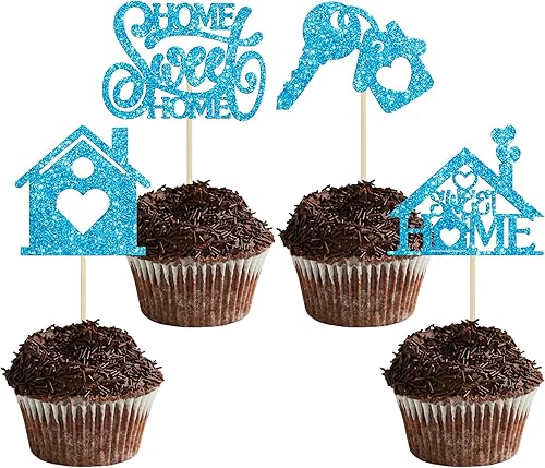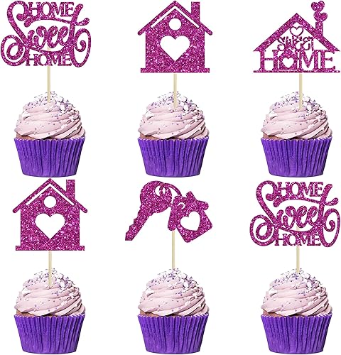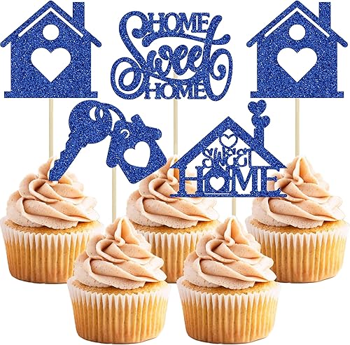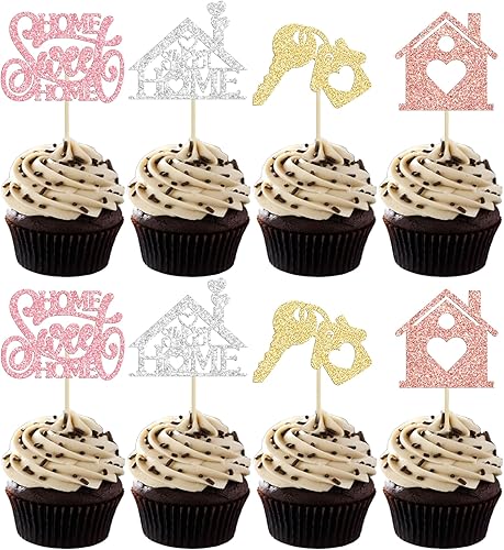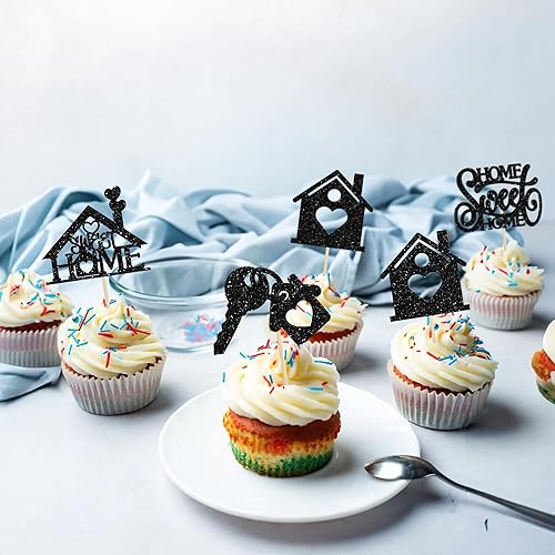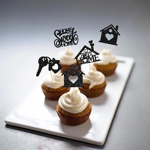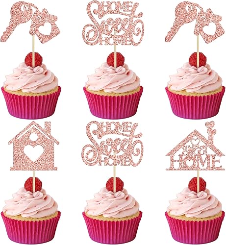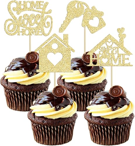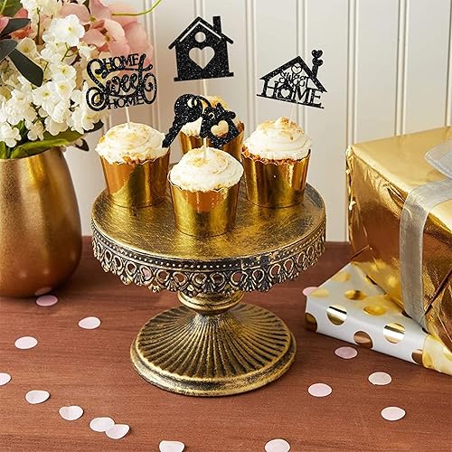 Lot de 24 décorations de cupcakes à paillettes en forme de clé pour pendaison de crémaillère - Doré