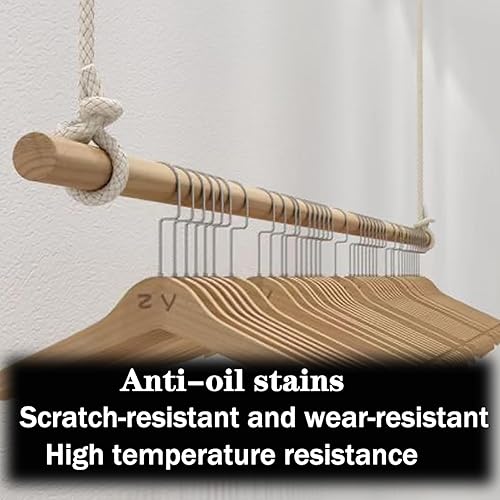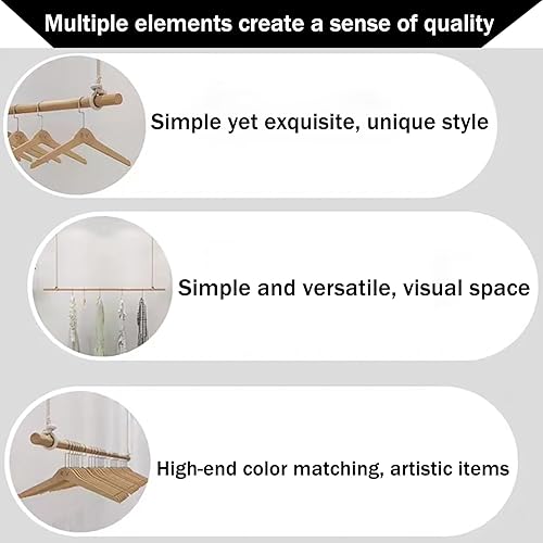RAUGAJ Suspendue Tringle À Vêtements,Porte-Manteau Mural en Bois 200 Cm Réglable en Hauteur,Naturel,Corde en Coton De Qualité Supérieure,Tringle À Vêtements,Fixation Au Plafond,Vintage Industriel