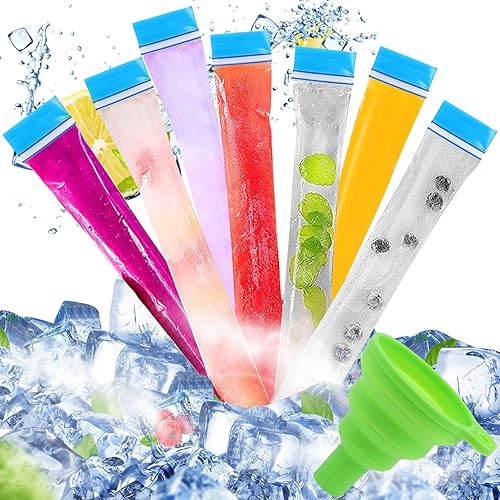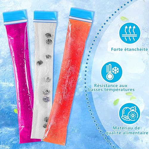 sulanmo 100PCS Sacs Popsicle, Sachets à Glaçons DIY, Moule Sacs de Sucettes Glacées avec Entonnoir pour Jus Yaourt Bonbon Glacé