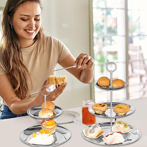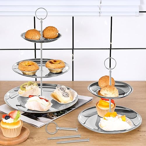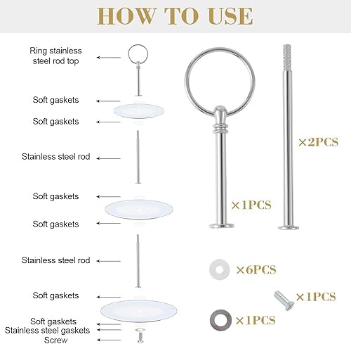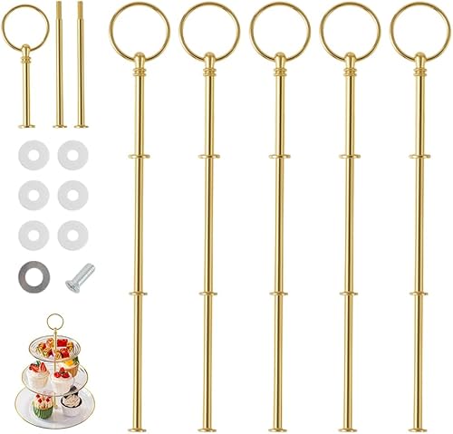 YZROHYI 5 Pièces 3 Niveaux Tiges pour Presentoir à Gâteaux,Barre de Gâteau en Metal,Porte Gateau Etagere avec Vis et Rondelles,Tiges pour Stand à Gâteaux,Support Gateau de Bonbons pour Cupcakes