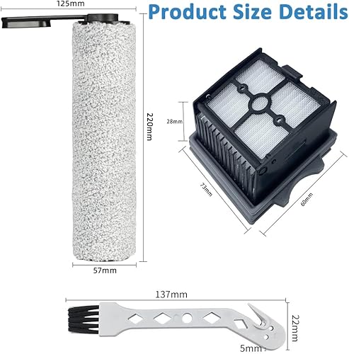 Rouleau de Brosse pour Tineco Floor One S5 Combo, Filtre pour Tineco S5 Accessoire de Rechange pour Tineco Floor One S5 Combo 2 Brosse à Rouleau 2 Filtre HEPA 1 Brosse de Nettoyage