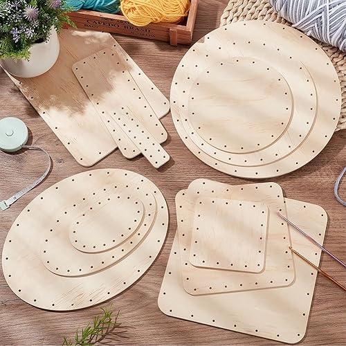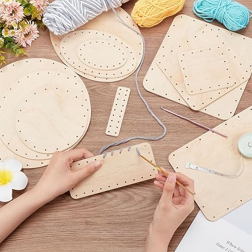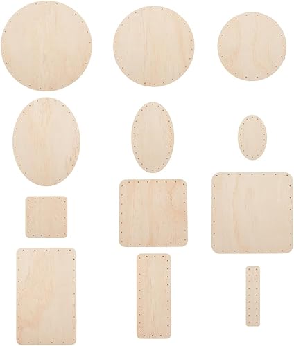 PH PandaHall 12pcs Fond de Panier pour Rotin, 12 Styles Rond/Ovale/Rectangle/Carré en Bois Panier de Base en Canne en Osier Planche Tissée pour la Fabrication de Porte-Crayons de Panier de Sol