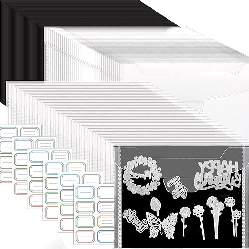 Lot de 86 sacs de rangement pour timbres et matrices de découpe et feuilles magnétiques en caoutchouc - Feuilles magnétiques de 0,5 mm pour matrices de découpe en métal, pochettes en plastique