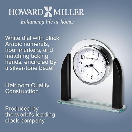 Howard Miller Aden Réveil de Table 645822 – Cristal de Verre, Côtés en Bois Finition Satinée Noire, Chiffres Arabes, Décoration D'intérieur Moderne, Mouvement D'alarme à Quartz