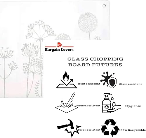 Planche à découper en verre trempé transparent avec imprimé floral gravé 40 x 30 cm